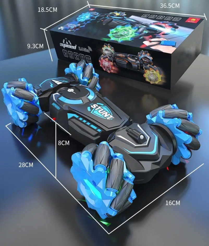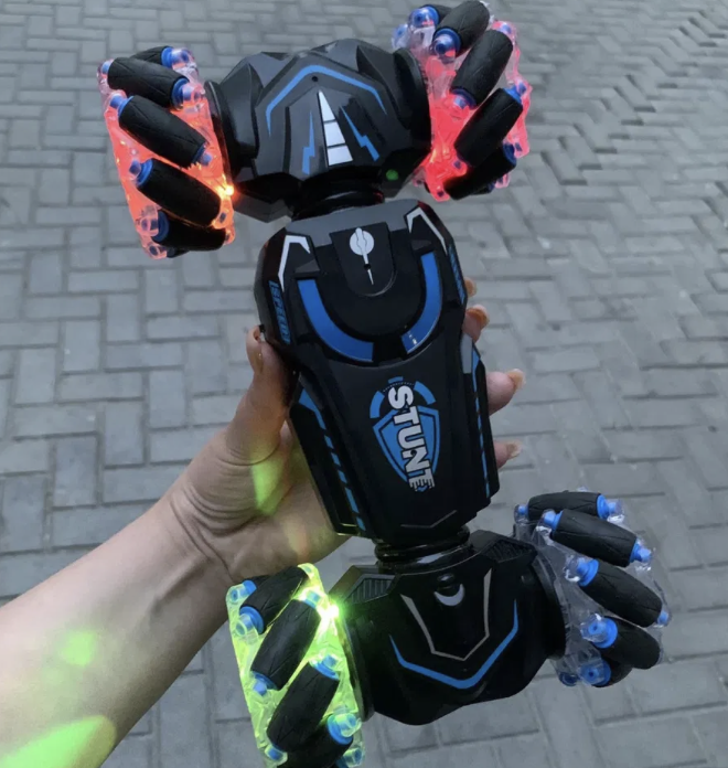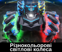 (вперед, назад, ліворуч, праворуч). Робить розворот на 360. Роликові колеса дозволяють машинці переміщатися вправо/ліворуч всім корпусом машинки, тобто їздити боком.